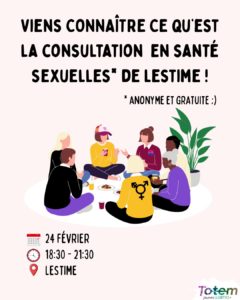 Le mardi 24 février, nous vous invitons à découvrir les consultations en santé sexuelle LesboQueer de Lestime. Une professionnelle viendra présenter ces services et répondre à vos questions.